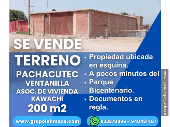Se vende terreno Pachacutec Ventanilla 200 m2 con título